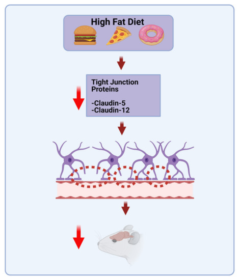 In NHPs and humans, there are far fewer studies on the effects of a HFD on the BBB. Reduced BBB integrity plays a role in vascular dementia and increases with aging, even in healthy humans [39,106]. Thus, if an HFD contributes to impaired BBB integrity, this might worsen age-related as well as pathological cognitive impairment.