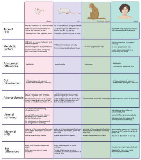 3. Synthesis: Species Considerations for Assessing the Effects of HFD in Preclinical Models