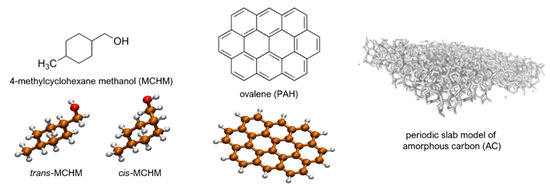 Chicago/Turabian StyleAlexander, William A. 2021. "Methyl-Cyclohexane Methanol (MCHM) Isomer-Dependent Binding on Amorphous Carbon Surfaces" Molecules 26, no. 11: 3411. https://doi.org/10.3390/molecules26113411