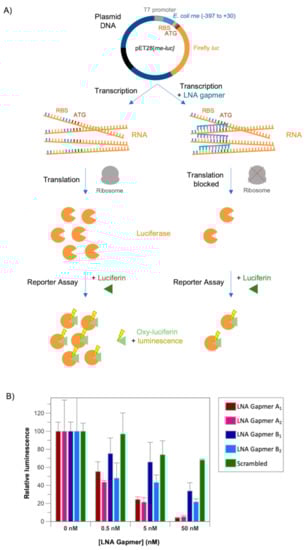 2.3. The LNA Gapmers Inhibit Translation in an In Vitro Cell-Free Assay