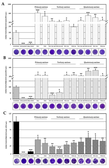 - Albulescu, I.C.; Van Hoolwerff, M.; Wolters, L.A.; Bottaro, E.; Nastruzzi, C.; Yang, S.C.; Tsay, S.-C.; Hwu, J.R.; Snijder, E.J.; Van Hemert, M.J. Suramin inhibits chikungunya virus replication through multiple mechanisms. Antiv. Res. 2015, 121, 39–46. [Google Scholar] [CrossRef]