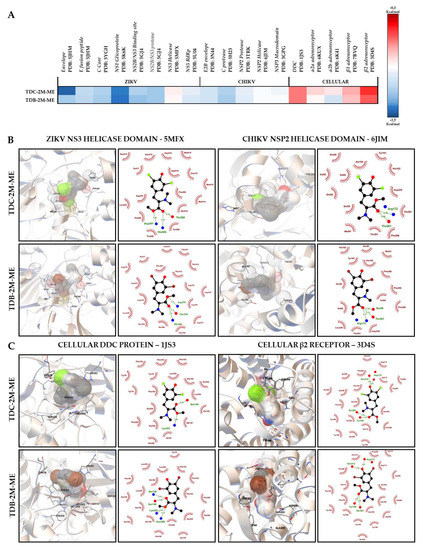 2.7. Phenolic Dihalogenated Compounds Derived from L-Tyrosine Present Favorable Interaction with the Viral Helicases of ZIKV and CHIKV and Some Cellular Proteins
