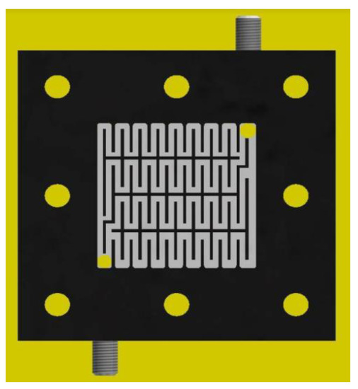 We designed a single cell for the Ce/ascorbic acid/I RFB system. This cell comprised a pair of electrodes, a separation membrane, a pair of flow channels, and a pair of current collectors similar to our previous study of the RFB system [13], as shown in Figure 5. A schematic depiction of flow channels is given in Figure 6.