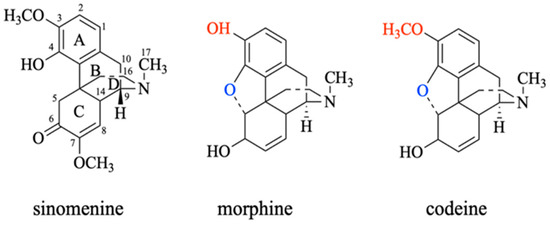 The dry canes of Sinomenium acutum (Thunb.) Rehd. et Wils. and Sinomenium acutum (Thunb.) Rehd. et Wils. var. cinereum Rehd. et Wils., also known as Qingfeng Teng in traditional Chinese medicine, have been used in the treatment diseases [14]. In the 1920s, sinomenine was isolated from Qing Feng Teng (Japanese sabia stem) grown in Japan [15]. Several studies reported that sinomenine (an isoquinoline alkaloid monomer) carrying a phenanthrene nucleus and ethylamine bridge, has a structure is similar to the narcotics morphine and codeine. Its chemical structure is shown in Figure 1.