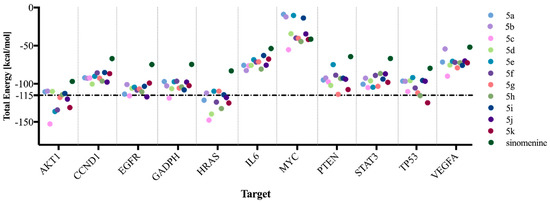 The total energy of molecular docking between compounds 5a–5k and 11 potential targets.