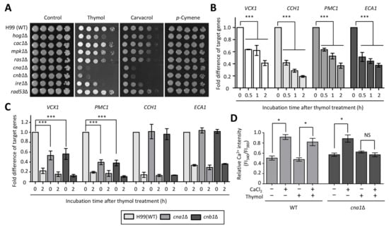 2.2. The Effect of Thymol Treatment on the Intracellular Ca2+ Balance in C. neoformans