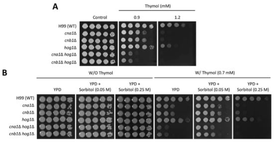 Chicago/Turabian StyleJung, Kwang-Woo, Moon-Soo Chung, Hyoung-Woo Bai, Byung-Yeoup Chung, and Sungbeom Lee. 2021. "Investigation of Antifungal Mechanisms of Thymol in the Human Fungal Pathogen, Cryptococcus neoformans" Molecules 26, no. 11: 3476. https://doi.org/10.3390/molecules26113476