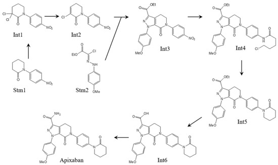 Apixaban and its intermediates were used as test solutes, which were formed during the manufacturing process [9]. The flow chart of the synthesis is presented on Figure 1.