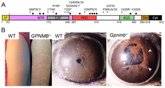 3.1. Mutations of PMEL or GPNMB Cause an Overlapping Spectrum of Pathologies but Highlight the Disparate Functional Roles of Each Protein