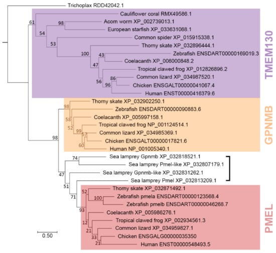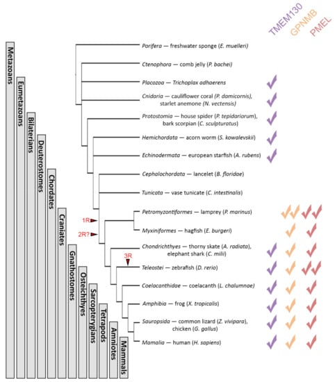 3.4. TMEM130 Is a Sister Group of Both GPNMB and PMEL