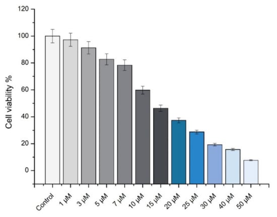 The MTT test was performed after 24 h using pure 10-HDA in order to evaluate the cell toxicity and the safe concentrations for use for ocular formulations. The SIRC cell viability results using pure 10-HDA are shown in Figure 4.