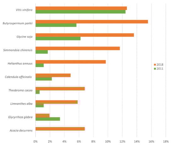 | Botanical Ingredient | 2011 (%) | 2018 (%) |