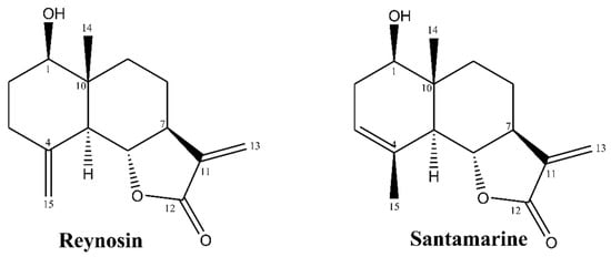Samples of the compounds reynosin and santamarine are available from the corresponding author upon reasonable request.