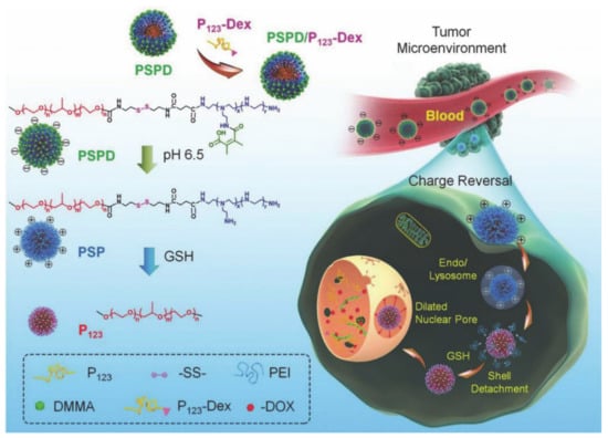 Scheme of the cooperative strategy for drug delivery mediated by hybrid micelle PSPD/P123-Dex (reproduced with permission from Wang et al. 2017 [88]. Copyright @2017 WILEY-VCH).