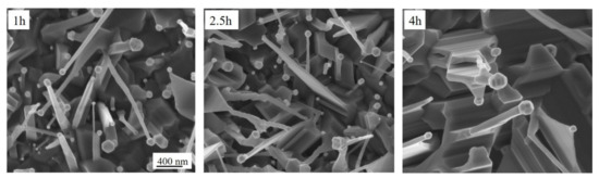 Figure 2 displays the SEM images of the samples annealed at 800 °C for different times: from 1 to 4 h. After 1 h annealing, the TiO