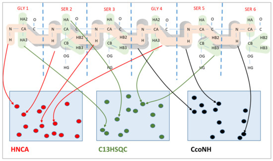 The field of three-dimensional structure analysis is a crucial interdisciplinary research area in natural sciences to detect the structure, function, and interactions of biological macromolecules [1]. NMR is one of the methods to determine protein and nucleic acid structure [2]. The sequence-specific assignment of the resonance frequencies or chemical shifts of 1H, 13C, and 15N nuclei is a central step of the NMR method and plays an essential role in the successful interpretation of NMR experiments [3]. The computer programs that calculate the protein structure from NMR data require almost completely assigned chemical shifts of the atoms to produce an accurate protein structure [4,5]. Even if there are many software programs to automate the chemical shift assignment process [6,7], a considerable amount of time by an experienced spectroscopist is needed if the determination is performed manually or by a semi-automated method.