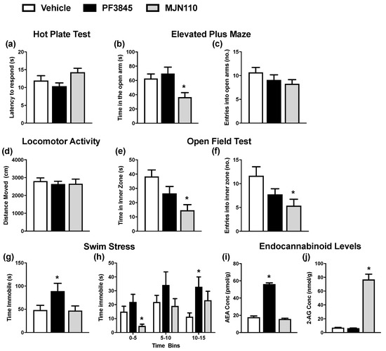- Flannery, L.E.; Kerr, D.M.; Finn, D.P.; Roche, M. FAAH inhibition attenuates TLR3-mediated hyperthermia, nociceptive- and anxiety-like behaviour in female rats. Behav. Brain Res. 2018, 353, 11–20. [Google Scholar] [CrossRef] [PubMed]