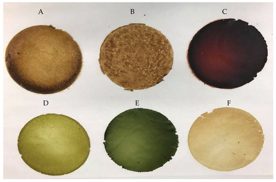 Edible films based on soy protein isolate and oilseed flours (A—SPI_Hempseed; B—SPI_Flaxseed; C—SPI_ Evening_primroseseed; D—SPI_Pumpkinseed; E—SPI_Sunflowerseed; F—SPI_Sesameseed).