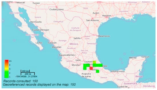 Publicly available datasets were analyzed in this study (Figure 1). This data can be found here: https://datosabiertos.unam.mx/biodiversidad/ (accessed on 20 April 2021).