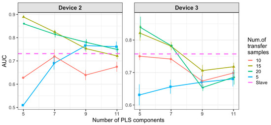 Partial least squares discriminant analysis-based calibration transfer (PLSDA)—the PLSDA-based method builds a PLSDA model relating transfer unlabeled samples from both master and slave instruments with a dummy vector containing their membership (master or slave) label. Furthermore, the predicted data from this model is removed from the original data set.