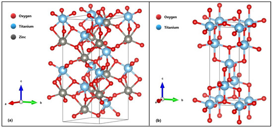 Optimized structures of (a) ZnTiO3 and (b) TiO2.