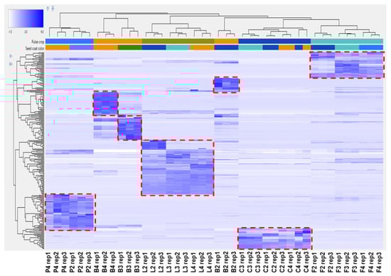 Heat map of hierarchal clustering analysis (HCA) showing separate clusters for seed coat samples.
