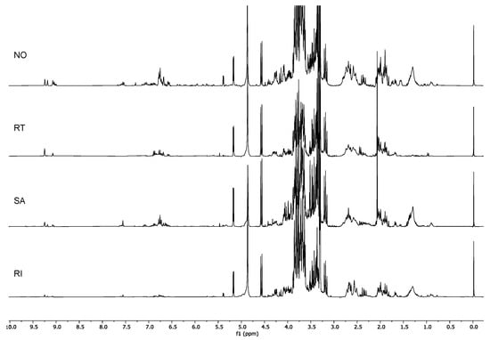 1H-NMR spectra of Group I: Ricippudda (RI), Salella (SA), Rotondella (RT), and Nostrale (NO).