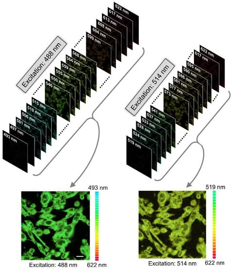 - Lajevardipour, A.; Chon, J.W.M.; Chattopadhyay, A.; Clayton, A.H.A. Imaging cellular dynamics with spectral relaxation imaging microscopy: Distinct spectral dynamics in Golgi membranes of living cells. Sci. Rep. 2016, 6, 37038. [Google Scholar] [CrossRef]