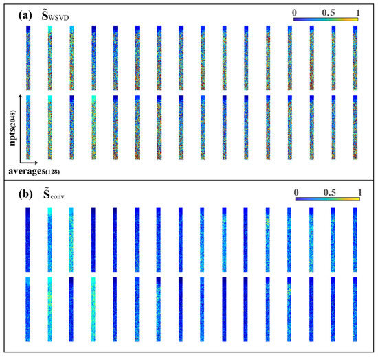 The repeatedly sampled data acquisition matrix (shown in Figure 1) can be reshaped to a complex vector . For the ath sampling and the cth coil, the relationship among the measurement data , the sensitivity , and the pre-combined signal obtained from WSVD can be stated as below: