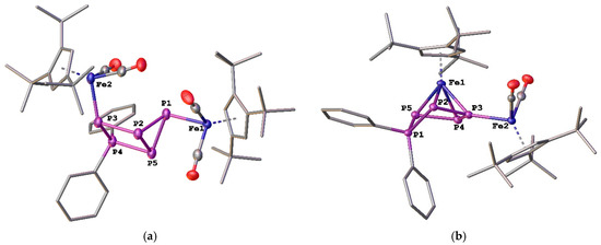- Scherer, O.J.; Schwarz, G.; Wolmershäuser, G. Eisen-Zweikernkomplexe mit unterschiedlichen P4-Liganden. Z. Anorg. Allg. Chem. 1996, 622, 951–957. [Google Scholar] [CrossRef]