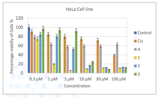 | Cisplatin | 9.61 (± 0.08) | 9.3 (± 0.2) | 7.8 (± 0.02) | 31.06 (± 0.1) |