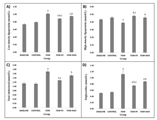 - Thirunavukkarasu, V.; Nandhini, A.T.A.; Anuradha, C.V. Effect of α-Lipoic Acid on Lipid Profile in Rats Fed a High-Fructose Diet. Exp. Diab. Res. 2004, 5, 195–200. [Google Scholar] [CrossRef]