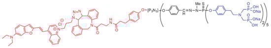 - Krishna, T.R.; Parent, M.; Werts, M.H.V.; Moreaux, L.; Gmouh, S.; Charpak, S.; Caminade, A.M.; Majoral, J.P.; Blanchard-Desce, M. Water-soluble dendrimeric two-photon tracers for in vivo imaging. Angew. Chem. Int. Ed. 2006, 45, 4645–4648. [Google Scholar] [CrossRef]