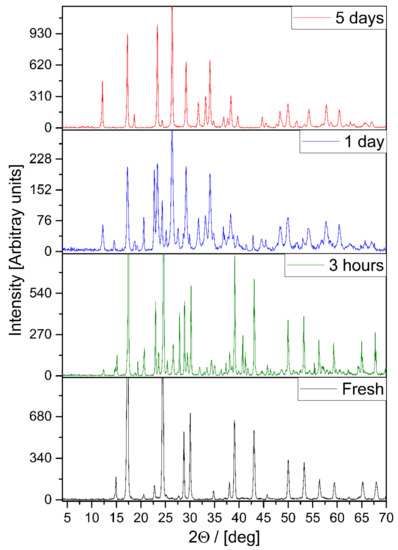 The PXRD and SEM meaurements were performed on a Philips Bragg Brentano parafocusing goniometer (Philips, Eindhoven, The Netherlands) and Zeiss EVO40 microscope (Carl Zeiss AG, Oberkochen, Germany) as descsribed in [31,32,33].
