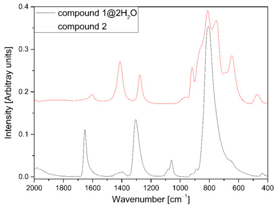 IR spectra of compound 1@2H2O and 2 between 2000 and 400 cm−1.