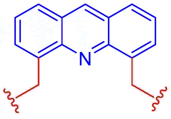 Acridine and its derivatives have been extensively studied. Researchers typically pay attention to the favorable fluorescent properties of these heterocyclic dyes. Unsurprisingly, acridines have for many years also become widespread in the field of supramolecular chemistry. They usually play an important role as optochemically active units of sensor molecules by providing the signaling function in the sensing process. In addition to the receptor unit responsible for molecular recognition, the most advanced direct-type optochemical sensor molecules also contain a signaling unit—such as an acridine fluorophore—and are able to fulfill these two basic functions of chemical sensors together [1]. They can be exemplified by a large number of recently developed optochemical ionophores containing a 4,5-dimethyleneacridine unit [2,3,4,5,6,7,8,9,10,11,12,13,14,15,16,17,18], which is shown in Figure 1.