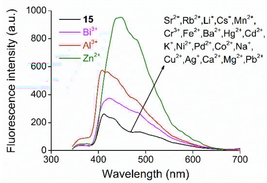 As the new reported sensor molecules showed Zn2+-, Al3+- and Bi3+-selectivity, a brief summary of the optochemical sensor molecules with similar selectivity from the last five years is needed to put the present work into context.