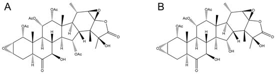 Chemical structures of the C-22,23-epoxytaccalonolides, AF (A) and AJ (B).