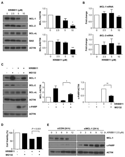 2.2. Downregulation of MCL-1 Is Essential for KRIBB11-Induced Apoptosis