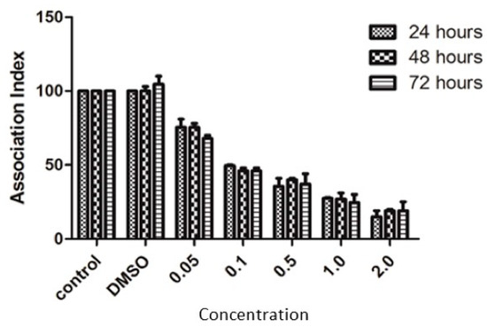 In vitro evaluation of the antiparasitic activity against T. cruzi epimastigotes (Y strain) after incubation for 24 h, 48 h or 72 h.