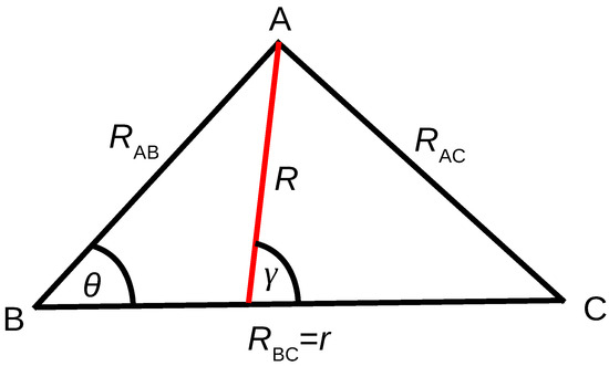 For the construction of PESs for the triatomic system ABC, ab initio energies were computed along the grids defined in internal coordinates ( and ), where and are the two internuclear distances between hydrogen and Rg atoms and is the angle between and as shown in Figure 1. Adiabatic PESs for ABC type systems can be represented as a many-body expansion function [66]: