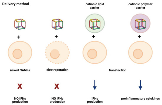 - Avila, Y.I.; Chandler, M.; Cedrone, E.; Newton, H.S.; Richardson, M.; Xu, J.; Clogston, J.D.; Liptrott, N.J.; Afonin, K.A.; Dobrovolskaia, M.A. Induction of cytokines by nucleic acid nanoparticles (NANPs) depends on the type of delivery carrier. Molecules 2021, 26, 652. [Google Scholar] [CrossRef]