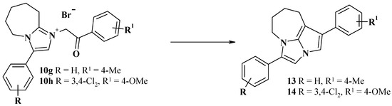 3-Phenyl-1-[2-(4-methylphenyl)-2-oxoethyl]-6,7,8,9-tetrahydro-5H-imidazo[1,2-a]azepin-1-ium bromide (10g) was obtained using the method of [19].