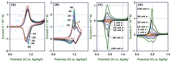 - Shigehara, K.; Oyama, N.; Anson, F.C. Electrochemical responses of electrodes coated with redox polymers. Evidence for control of charge-transfer rates across polymeric layers by electron exchange between incorporated redox sites. J. Am. Chem. Soc. 1981, 103, 2552–2558. [Google Scholar] [CrossRef]