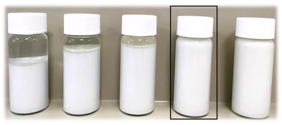 In Figure 3, images of tested HAp suspensions directly after the measurements reflecting the differences between the sedimentation rates of particular samples are shown.