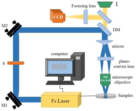Experimental set-up of femtosecond laser Bessel beam processing system.