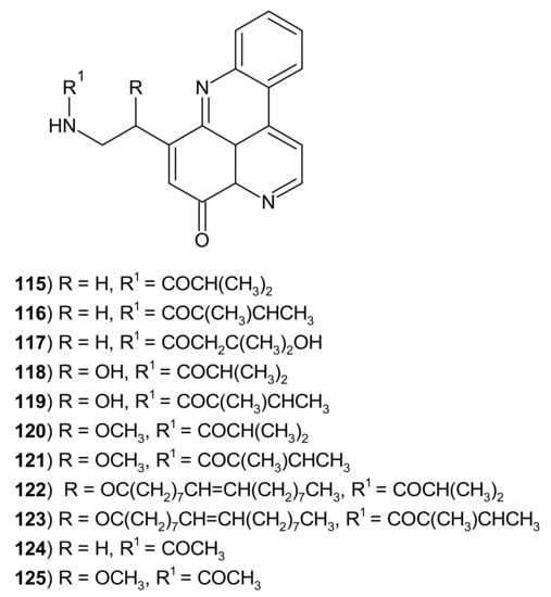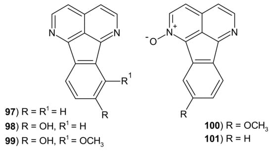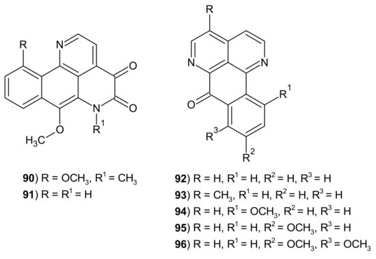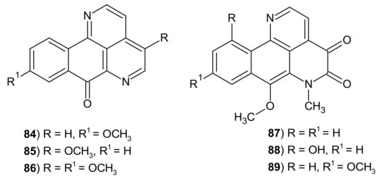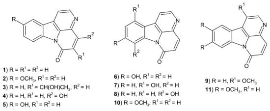 - Hufford, C.D.; Liu, S.; Clark, A.M.; Oguntimein, B.O. Anticandidal activity of eupolauridine and onychine, alkaloids from Cleistopholis patens. J. Nat. Prod. 1987, 50, 961–964. [Google Scholar] [CrossRef] [PubMed]