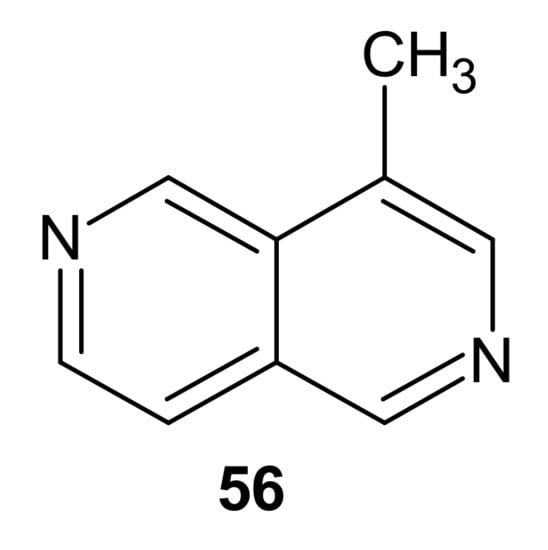 4-Methyl-2,6-naphthyridine 56 (Figure 17) is an alkaloid isolated from the dried plant of Antirrhinum majus by Harkiss and Swift in 1970 [67].