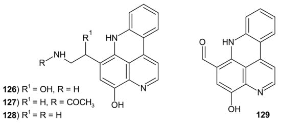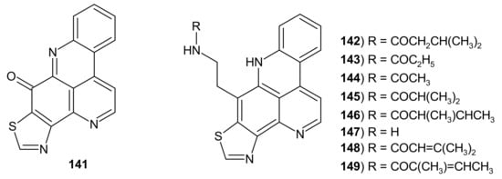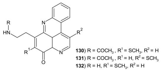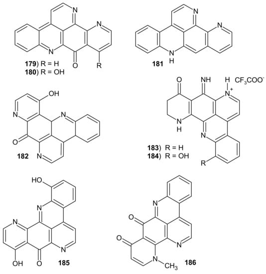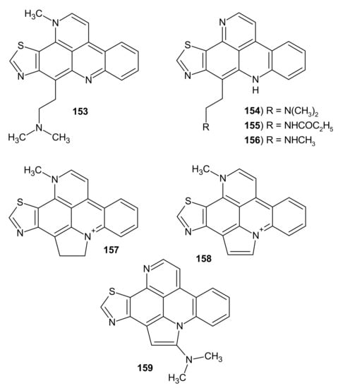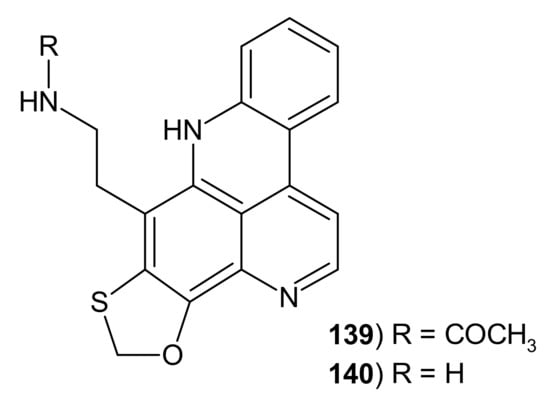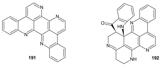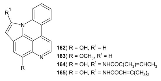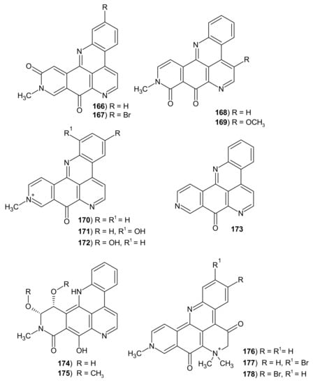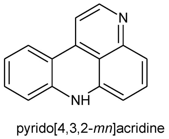 - Marshall, K.; Barrows, L.R. Biological activities of pyridoacridines. Nat. Prod. Rep. 2004, 21, 731–751. [Google Scholar] [CrossRef] [PubMed]