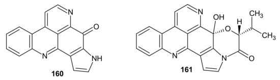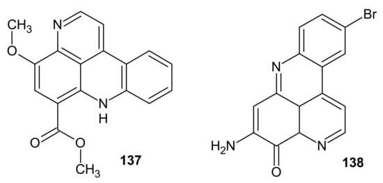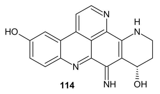 - Plubrukarn, A.; Davidson, B.S. Arnoamines A and B, new cytotoxic pentacyclic pyridoacridine alkaloids from the ascidian Cystodytes sp. J. Org. Chem. 1998, 63, 1657–1659. [Google Scholar] [CrossRef]